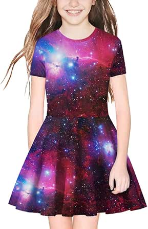 Amazon.com: TENMET Vestido de niña con estampado de unicornio galaxia en 3D con manga corta y falda de columpio casual para niños de 8 a 11 años : Ropa, Zapatos y Joyería