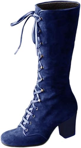 Yowablo Bottes Femmes Mode Casual Vintage Rétro Mi-Mollet À Lacets Épais Talons Chaussures: Amazon.fr: Chaussures et Sacs