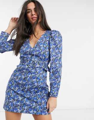 Stradivarius - Robe à fleurs avec ceinture - Bleu | ASOS
