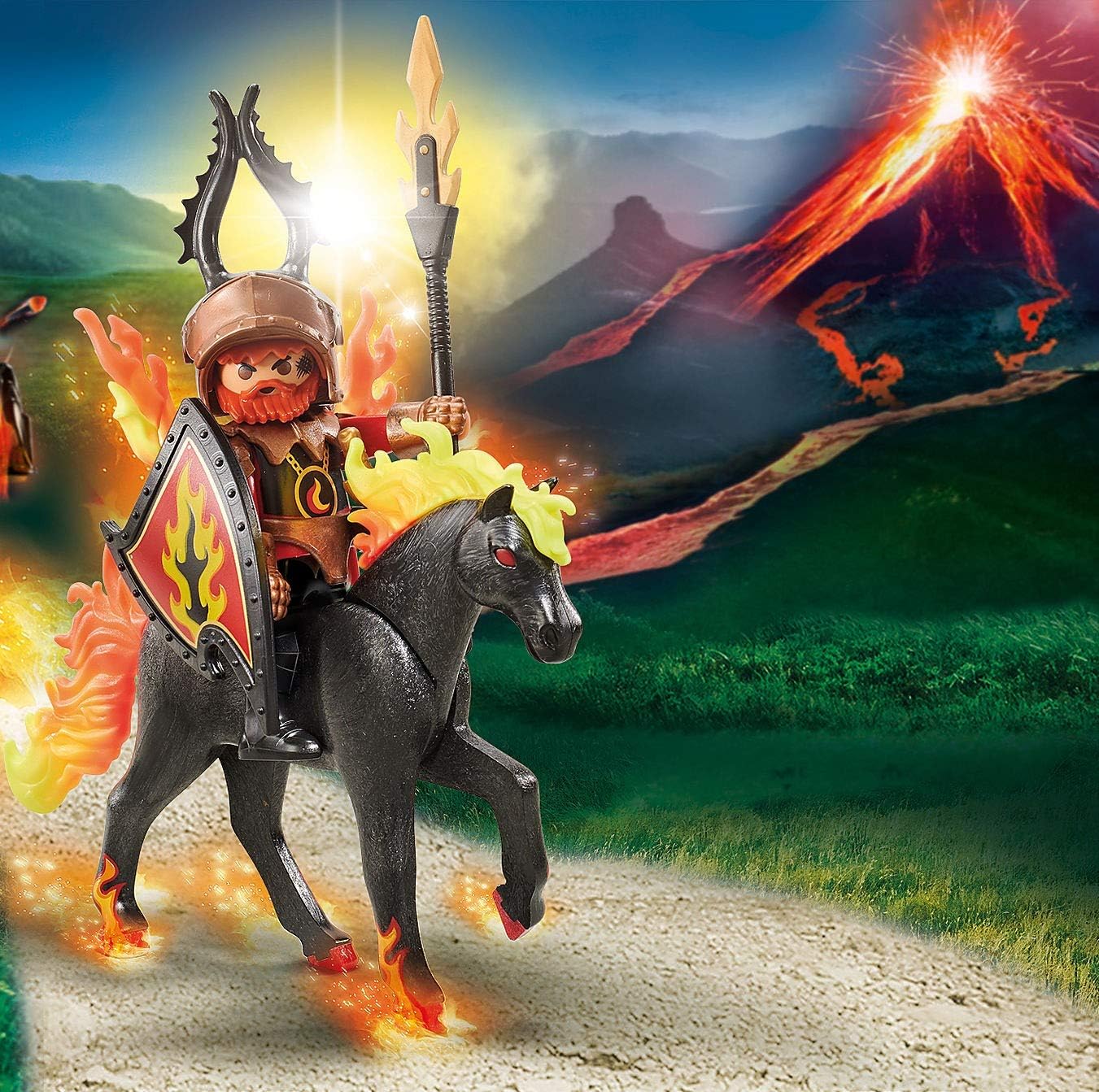 Playmobil - 9882 - Novelmore - Chevalier avec Cheval de feu des Burnham Raiders - sous Emballage Plastique, Pas de boîte en Carton Bleu: Amazon.fr: Jeux et Jouets
