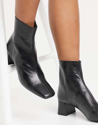 Mango - Bottines en cuir à talon mi-haut - Noir | Saluscampusdemadrid