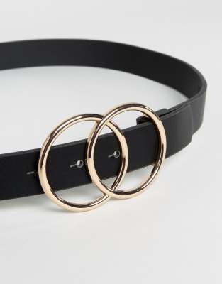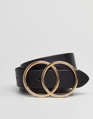 Acheter Ceinture avec Deux Anneaux Ronde Dorée | Boucle de Ceinture Double Anneau Cuir Simple : femme